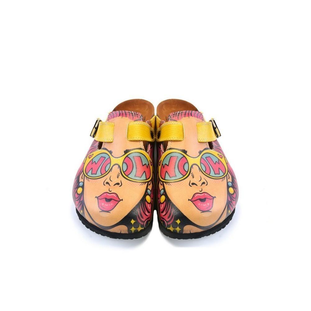 Pink & Yellow Wow Woman Slip-On Mule CAL373